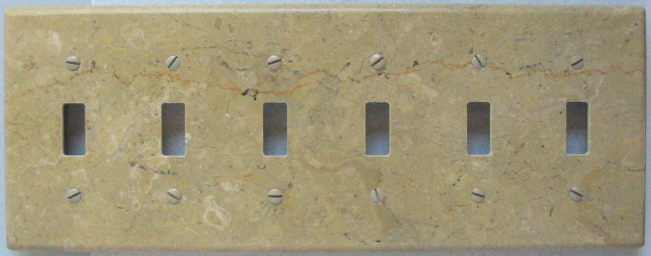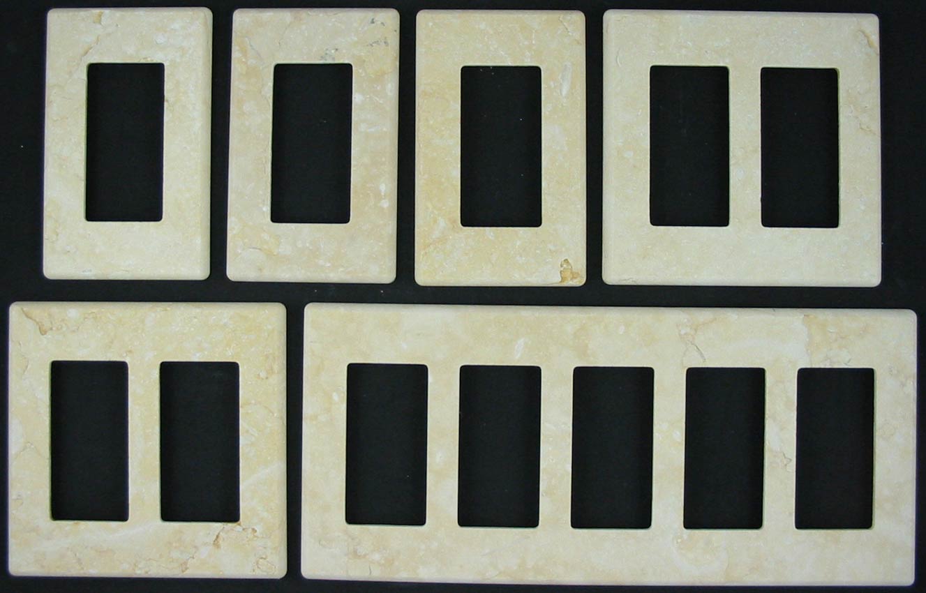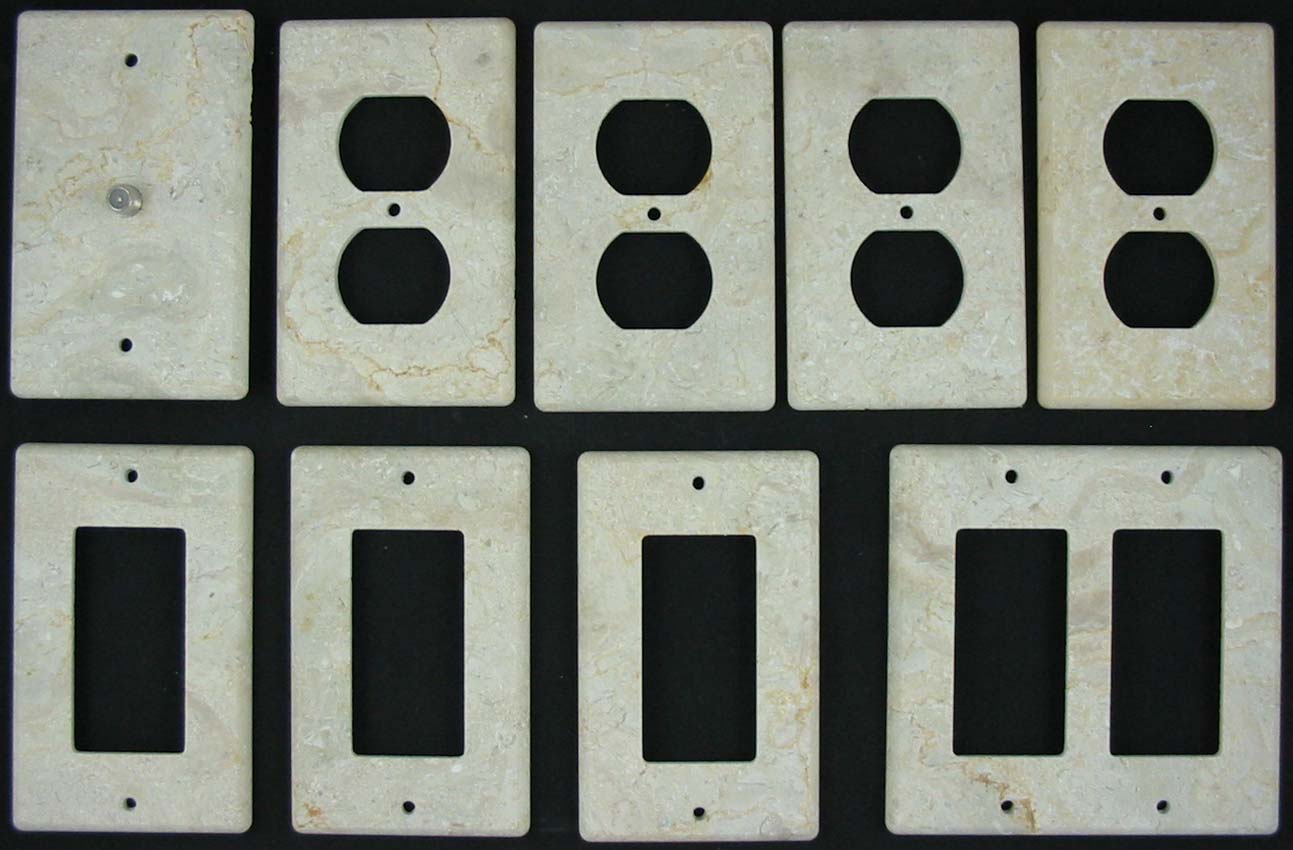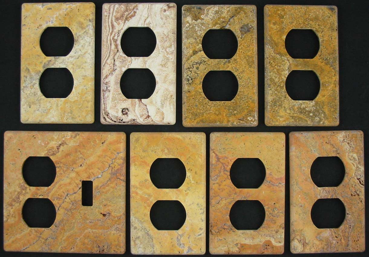 Polished travertine switch plates with a |