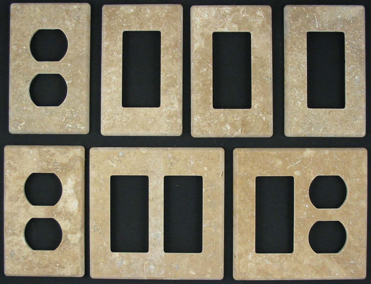 Tumbled travertine switch plates