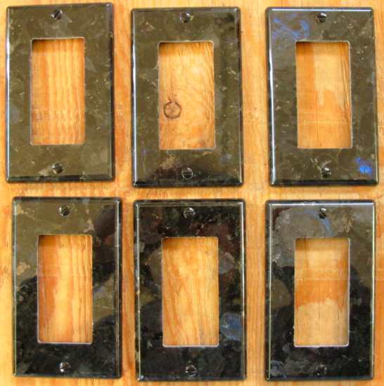Below are photos of various orders of switch plates that we have done over the years. Since the screws we supply are 1/2" long they don't fit in the plates when they are laying on the table, this is why most of the photos show the switch plates without the screws.