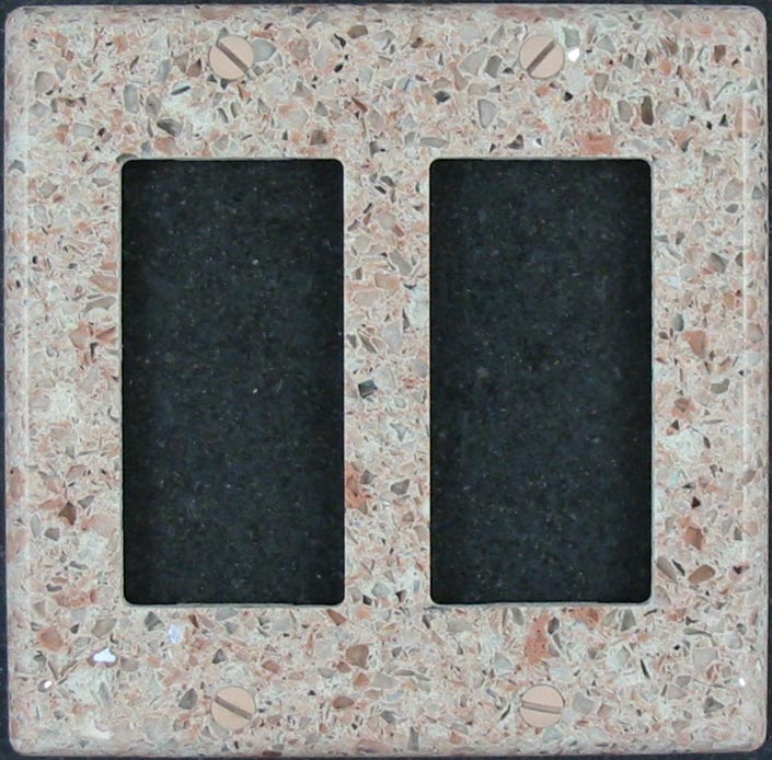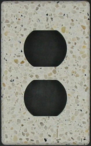 We can make custom switch plates and outlet covers from any of the man made quartz surfaces, also known as engineered stone. These materials are most like granite when fabricating so they are priced the same, but the material is always very consistent and produces very nice switchplates.