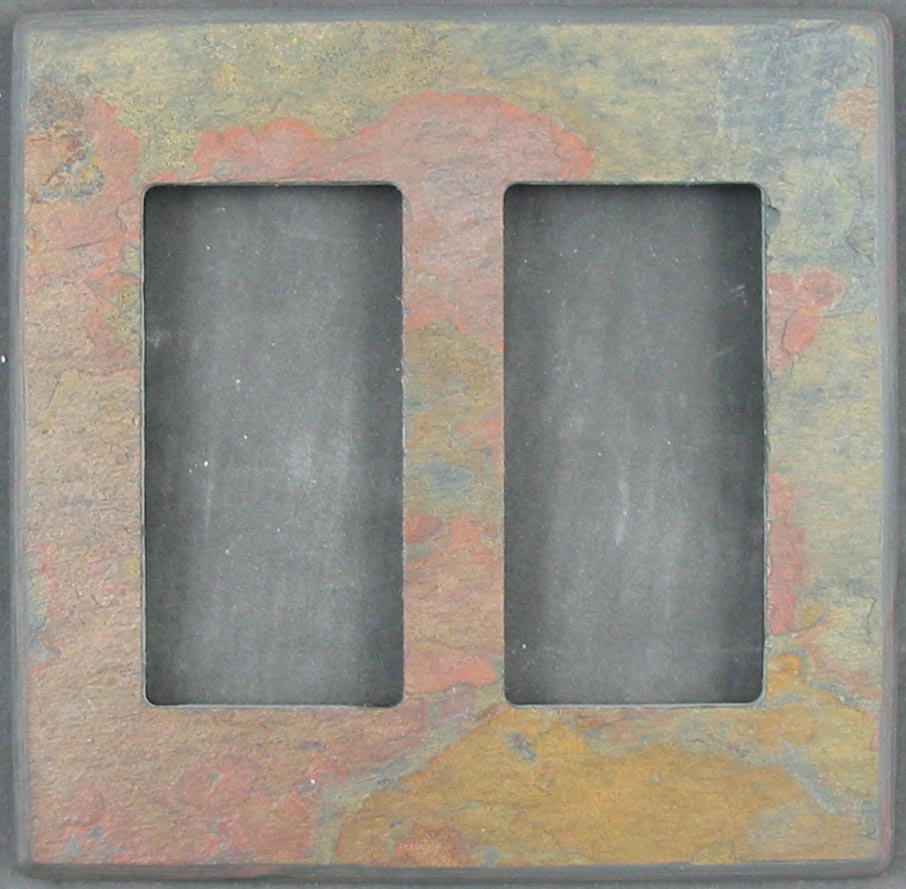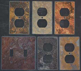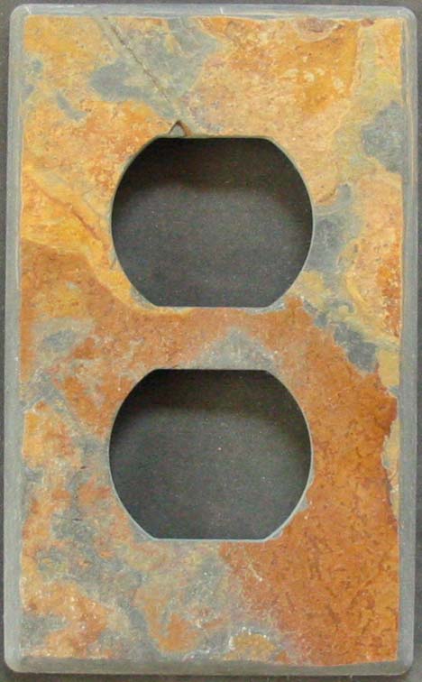 This slate outlet cover shows how an uneven natural cleft surface shows around the fixture and the radiused edges