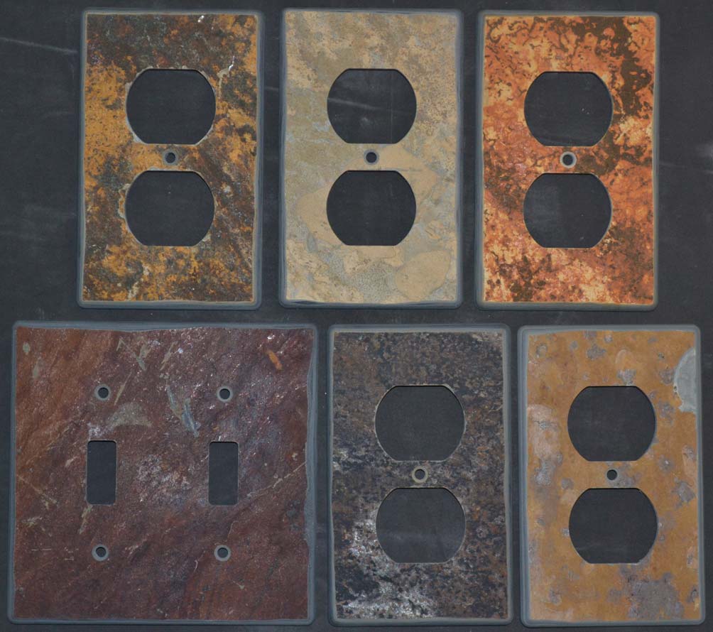 Slate is generally an easy stone to work with but there are a few issues that may come up. The most common problem we encounter is that natural cleft slates have an uneven surface. This may pose the problem of finding areas flat enough to make switch plates from. If this describes your slate then pick your flattest tiles or send additional stone. I have added Quartzite stones to this page since they have many similarities to slate.