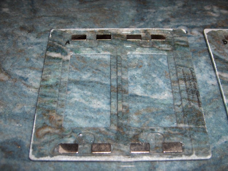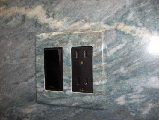 They use a router to thin down the stone and shape the back of the wall plate. Our stone was 2 cm but even that needs to be made much thinner for the wall plate. Here is the back side of one of our switch plates: