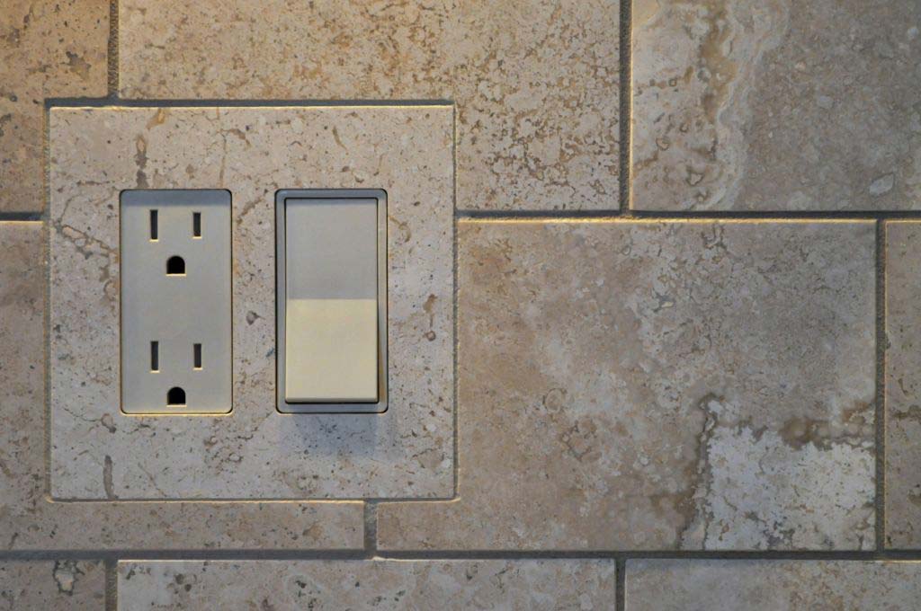 An alternative method of installing your custom stone switch plates is to tile them into your