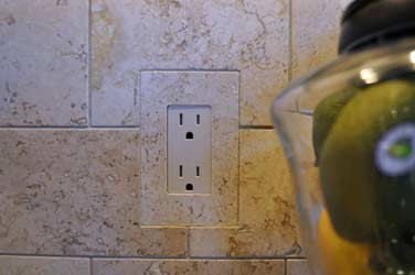 I wanted to pass along a few pictures of our finished kitchen. The tiled in outlet covers REALLY add that extra detail that takes people by surprise. (Including our subs that worked on the project. None of them have seen that in this area.)