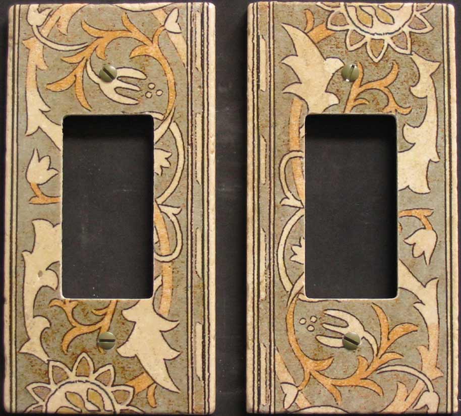 The edges of tiled-in switch plates are left saw cut. The finished sizes are 1/8" per side larger than the switch plates that have radiused edges. The finished sizes of tiled-in switchplates listed below are +/- 1/16".